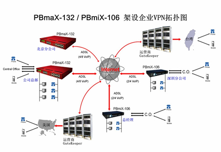 對于具有多個分支機構的公司,PBmaX/PBmiX系列IP-PBX能夠通過內(nèi)建的VoIP通道將各分支機構連接起來。使撥打遠程分機如同撥打本地分機 一樣簡單,且無需支付任何長話費用。