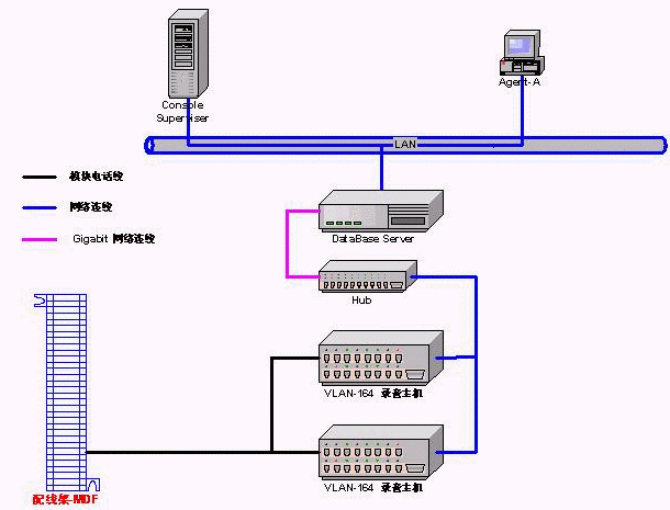 VLAN Lan-based數(shù)字錄音系統(tǒng)采用全網(wǎng)絡架構(gòu),突破了原有使用錄音卡及工控機方式的局限性與高成本。使您的錄音系統(tǒng)不再需要工控機,安裝升級擴展完全不受工控機擴展槽及硬件兼容性的限制。VLAN錄音系統(tǒng)推薦采用PC Server作為錄音存儲服務器,通過網(wǎng)絡協(xié)議與VLAN硬件相連。