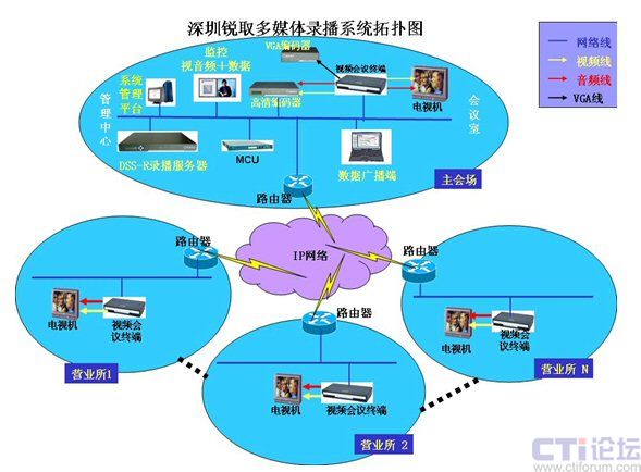 如上圖所示,在多媒體股評直播室中,股評師的講解圖像和聲音以及電腦中分析數(shù)據(jù)同步傳輸采集到控制機(jī)房中,通過多媒體錄播服務(wù)器直播模塊的組播方式將信息傳達(dá)給全國遍布的營業(yè)網(wǎng)點(diǎn),實(shí)現(xiàn)股評直播的需求。(權(quán)威股評師將在每天下午股市休市后對一天當(dāng)中股票大盤做一次全面的分析,并對本周或某行業(yè)的形式做一個全面的總結(jié),并對未來形勢做出判斷。)