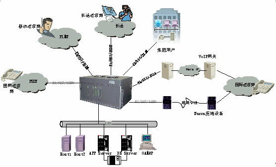 Access Modem等;多種信令:R1,R2,E&M,TUP,ISUP,ANSI,ISDN等;高集成度:模塊化設(shè)計(jì),優(yōu)化了結(jié)構(gòu),系統(tǒng)小巧靈活。