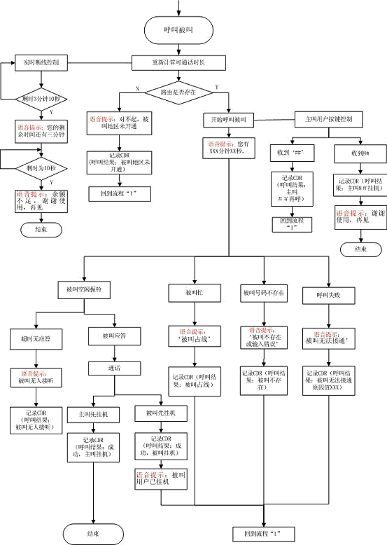 當(dāng)客戶的余額不足一分鐘時,系統(tǒng)報提示音和催掛音并自動釋放電話鏈路。 |