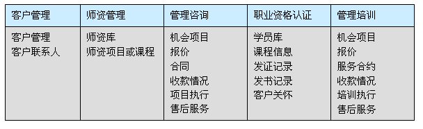 這些業(yè)務(wù)盡管各有目標(biāo)客戶對(duì)象和業(yè)務(wù)流程,但又互相牽連,在行業(yè)內(nèi)部,他們之間的共享和獨(dú)立性需求非常獨(dú)特。綜合起來,在管理咨詢培訓(xùn)行業(yè),普通存在的問題如下: