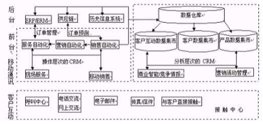 在企業(yè)中對于客戶關系資源管理方面可歸納為兩個方面的問題。其一,企業(yè)的銷售、營銷和客戶服務部門難以獲得所需的客戶互動信息。其次,來自銷售、客戶服務、市場、制造、庫存等部門的信息分散在企業(yè)內,這些零散的信息使得無法對客戶有全面的了解,各部門難以在統(tǒng)一的信息的基礎上面對客戶。這需要各部門對面向客戶的各項信息和活動進行集成,組建一個以客戶為中心的企業(yè),實現(xiàn)對面向客戶的活動的全面管理。
