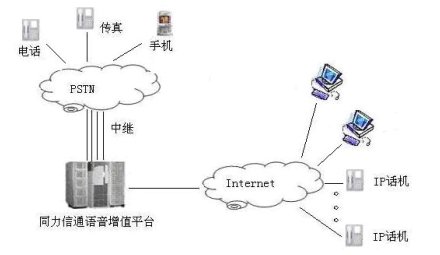由于使用VoIP技術,因此需要同力信通語音平臺連接到Internet上,實際上,目前大部分的設備都是和Internet連接的,一般用來遠程管理和維護。語音平臺通過專線、ADSL、撥號連接Internet均可。