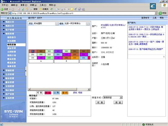 通過房產(chǎn)銷售狀態(tài)的控制,系統(tǒng)可以很直觀地看到房產(chǎn)當(dāng)前的銷售情況,并根據(jù)房產(chǎn)的現(xiàn)狀作出下一步工作安排。