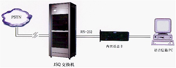 JSQ交換機(jī)計(jì)費(fèi)系統(tǒng)由JSQ交換機(jī)內(nèi)置的留言信箱接口板和通過串行口相連的PC機(jī)組成。系統(tǒng)采用兩條標(biāo)準(zhǔn)PC串口,不另外增加硬件,確保了系統(tǒng)運(yùn)行可靠。JSQ交換機(jī)語音信箱系統(tǒng)由一條串口提供經(jīng)過壓縮的數(shù)字語音通道,以確保優(yōu)質(zhì)傳輸和有效利用硬盤空間,每7兆硬盤即可保存一小時(shí)的語音信息。另一條串口提供PC用戶的信息傳輸通道。