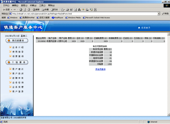 - 繳費(fèi)情況查詢:包括用戶費(fèi)用總額、繳費(fèi)金額、欠費(fèi)金額、繳費(fèi)日期