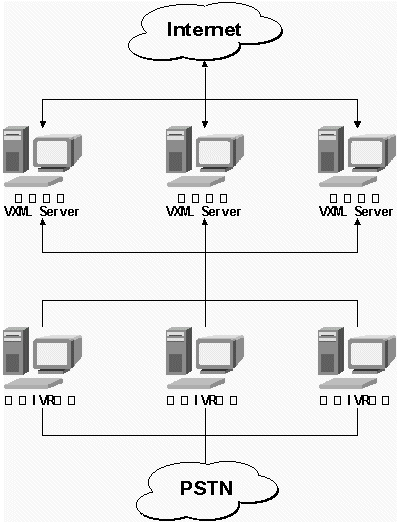 3)VXML技術(shù):用以IVR平臺與互聯(lián)網(wǎng)絡(luò)交互信息。(IVR:Interactive Voice Response,交互式語音應(yīng)答系統(tǒng)。)