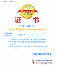 CTI論壇(ctiforum)10月12日消息: 近日,備受關(guān)注的CIPCA2009中國(guó)IP通信大獎(jiǎng)評(píng)選活動(dòng)近日落下帷幕,科大訊飛繼2008年之后,再次捧獲2009年中國(guó)最佳語(yǔ)音識(shí)別合成提供商獎(jiǎng)項(xiàng)。CIPCA中國(guó)IP通信大獎(jiǎng)是國(guó)內(nèi)下一代網(wǎng)絡(luò)通信行業(yè)最專(zhuān)業(yè)、權(quán)威的獎(jiǎng)項(xiàng),由全球IP通信聯(lián)盟發(fā)起,力主公正、公開(kāi)、公平。全球IP通信聯(lián)盟是中國(guó)最大的下一代網(wǎng)絡(luò)/通信行業(yè)門(mén)戶(hù)媒體及行業(yè)聯(lián)盟,縱跨固網(wǎng)和移動(dòng),涵蓋UC統(tǒng)一通信、IP語(yǔ)音、視頻、呼叫中心、即時(shí)通信、無(wú)線通信、IPTV等下一代通信各領(lǐng)域以及相關(guān)的安全、測(cè)試、芯片等行業(yè)。中國(guó)IP通信大獎(jiǎng)通過(guò)網(wǎng)絡(luò)評(píng)比與專(zhuān)家測(cè)評(píng)相結(jié)合的形式選拔產(chǎn)生,旨在肯定業(yè)內(nèi)優(yōu)秀企業(yè)為行業(yè)發(fā)展所作的努力與貢獻(xiàn),推動(dòng)市場(chǎng)的良性發(fā)展,同時(shí)為行業(yè)用戶(hù)提供一個(gè)權(quán)威的參考平臺(tái)。