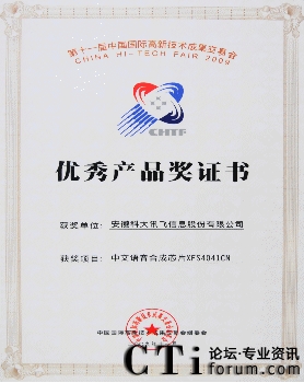 | 科大訊飛獲評“中國手機(jī)創(chuàng)新軟件金品獎十佳” 2009-11-19 |