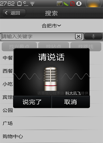 圖:“圖吧手機(jī)地圖”android V5.2版語音搜索界面