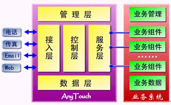 接入層--是平臺提供客服中心與外界聯(lián)接的接口,包括了板卡接入、交換機接入、WWW接入、eMail接入及其它形式的接入方式。
