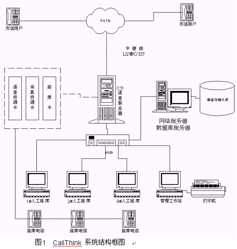 正是基于以上考慮,北京強(qiáng)訊公司根據(jù)多年來在企業(yè)級(jí)辦公自動(dòng)化通信領(lǐng)域積累的經(jīng)驗(yàn),推出了"CallThink 企業(yè)級(jí)呼叫中心系統(tǒng)",該系統(tǒng)充分考察大多數(shù)企業(yè)的實(shí)際情況,本著合理利用現(xiàn)有設(shè)備,以最小的投入獲取最大的效益的原則,包含了自動(dòng)呼叫分配(ACD)、交互式語音應(yīng)答(IVR)、計(jì)算機(jī)語音集成(CTI)、客戶關(guān)系管理(CRM)等業(yè)務(wù)。