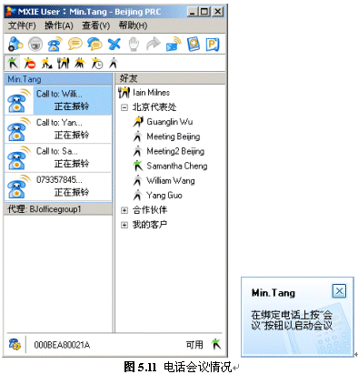 系統(tǒng)提供了靈活的電話(huà)會(huì)議方式,例如:總經(jīng)理發(fā)起一個(gè)電話(huà)會(huì)議,公司的IT主管、客戶(hù)經(jīng)理參加,當(dāng)聊到IT方面時(shí),需要具體的負(fù)責(zé)人來(lái)解答一些問(wèn)題,IT主管可以用MXIE或話(huà)機(jī)將他加入到會(huì)議中來(lái),回答完畢后,他可以自己掛機(jī)退出會(huì)議,IT主管也可以將他退請(qǐng)出會(huì)議,而會(huì)議不會(huì)中斷。
