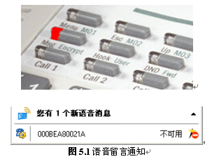 當(dāng)有新消息到達(dá)時(shí),話(huà)機(jī)上的“Msg”燈會(huì)閃亮,MXIE軟件也會(huì)有相應(yīng)提示。