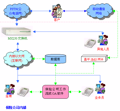 基于蘇迪思融合型通信系統(tǒng),無論保險(xiǎn)公司機(jī)構(gòu)或代理人位置在哪里,都將使用統(tǒng)一的電話號碼和傳真號碼與客戶進(jìn)行聯(lián)系,客戶只要看到這個(gè)號碼就知道自己投保的公司在與他聯(lián)系。實(shí)現(xiàn)這一點(diǎn),保險(xiǎn)公司不會(huì)產(chǎn)生額外的電話費(fèi)用,因?yàn)閂OIP是不需要支付電話費(fèi)的,而且,保險(xiǎn)公司將話務(wù)量收集后還可以與ISP談更好的話費(fèi)折扣。
