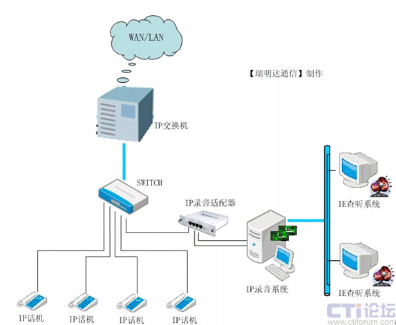 【瑞明達(dá)通信】是國內(nèi)較早從事專業(yè)計算機(jī)電話語音系統(tǒng)(CTI)產(chǎn)品的開發(fā)商, 在客戶交互式解決方案行業(yè)中有十多年的從業(yè)經(jīng)驗,具備雄厚的語音產(chǎn)品開發(fā)能力。最近幾年,基于 IP 的下一代通信,正在以前所未有的速度改變著全世界的通信架構(gòu)和商業(yè)格局!救鹈鬟_(dá)通信】作為錄音技術(shù)的領(lǐng)先廠商,就已經(jīng)具有前瞻性的潛心致力于基于IP通訊線路的多媒體記錄解決方案的研發(fā),RMD_VoIPlog錄音系統(tǒng)是由【瑞明達(dá)通信】自行開發(fā)研制的新一代IP錄音系統(tǒng)。該系統(tǒng)在記錄VoIP語音的同時,所需的語音資源通過軟件方式或硬件平臺直接由網(wǎng)絡(luò)中的RTP等數(shù)據(jù)流獲取,無須和座席分機(jī)或中繼線進(jìn)行并接,因此是一種軟件/硬件分別實(shí)現(xiàn)的錄音系統(tǒng),是真正的基于IP 的錄音解決方案。RMD_VoIPlog錄音系統(tǒng),是以數(shù)字記錄、數(shù)據(jù)庫查詢、光盤存儲等先進(jìn)技術(shù)為手段,為通話語音的錄制、管理提供了一種先進(jìn)、科學(xué)而又行之有效的方法。二、RMD_VoIPlog錄音系統(tǒng)運(yùn)行環(huán)境