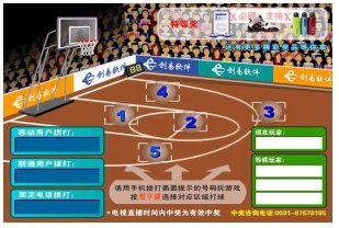 挑戰(zhàn)籃球游戲是一款全新的基于電視/網(wǎng)絡(luò)平臺(tái)的體育休閑娛樂游戲,用戶可以借助短信等手段參與游戲,在游戲中不但可以贏取游戲積分,通過積分兌換獎(jiǎng)品,還可以身臨其境地感受賽場上投籃的快感,F(xiàn)在拿起你的手機(jī)或電話,選擇一下角度吧!