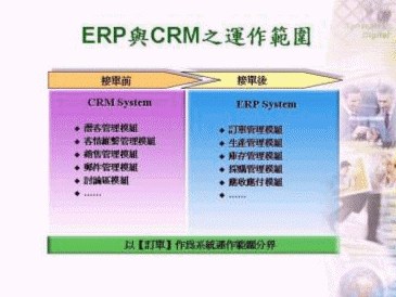 由上述可知,ERP系統(tǒng)主要應(yīng)用于業(yè)務(wù)人員接到訂單后,便開始進(jìn)入ERP系統(tǒng)的運(yùn)作范圍內(nèi),一直到產(chǎn)品出貨收到貨款為止,故接單前的業(yè)務(wù)開發(fā)、客情維系甚或報價管理等工作,其實(shí)并非其主要應(yīng)用范圍。