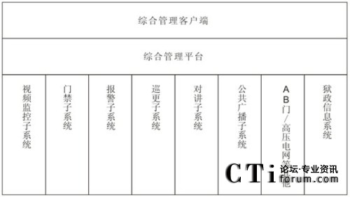 綜合管理首先將實(shí)現(xiàn)各個(gè)安防子系統(tǒng)以及獄政系統(tǒng)的統(tǒng)一管理。在實(shí)現(xiàn)方式上,首先需要一套綜合管理平臺(tái),視頻監(jiān)控、報(bào)警、巡更、門(mén)禁、對(duì)講、公共廣播、AB門(mén)、高壓電網(wǎng)等安防系統(tǒng)以及獄政信息系統(tǒng)均作為子系統(tǒng)通過(guò)相應(yīng)的接口接入綜合管理平臺(tái),然后由綜合管理平臺(tái)進(jìn)行各子系統(tǒng)管理模塊的集成,并提供統(tǒng)一的登錄、管理以及業(yè)務(wù)瀏覽界面。用戶僅需通過(guò)綜合管理客戶端登錄綜合管理平臺(tái)即可統(tǒng)一管理和集中查看所有安防子系統(tǒng)以及獄政信息系統(tǒng)的業(yè)務(wù),從而大大提升管理集中性、便捷性以及管理效率。