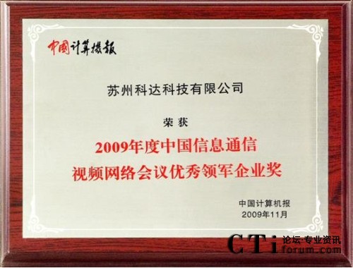 科達(dá)獲中國信息通信視頻網(wǎng)絡(luò)會議優(yōu)秀領(lǐng)軍企業(yè)獎