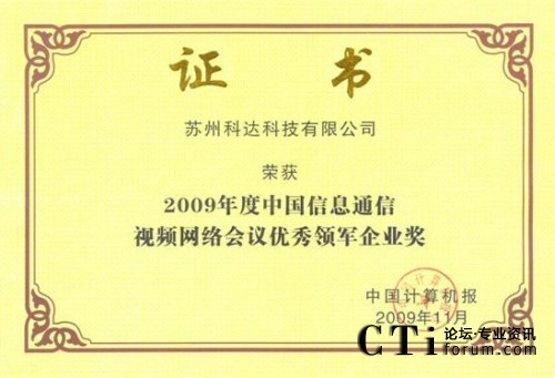CTI論壇(ctiforum)12月24日消息(記者 潘婷):近日,在2009中國信息通信產(chǎn)業(yè)年度評選活動中,科達(dá)憑借優(yōu)秀的品牌效應(yīng)和領(lǐng)先的市場占有率榮獲“中國信息通信視頻網(wǎng)絡(luò)會議優(yōu)秀領(lǐng)軍企業(yè)獎”。