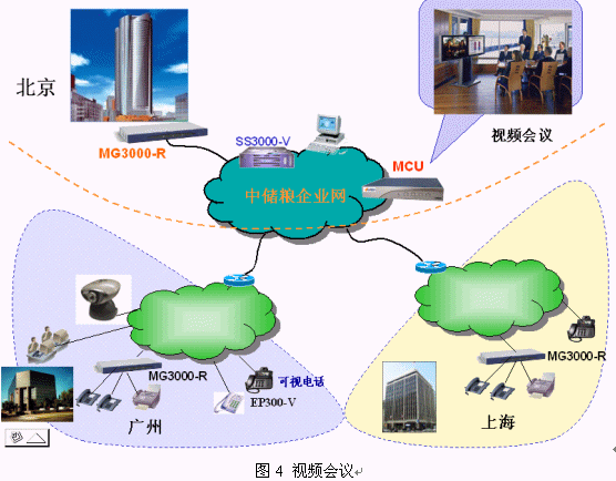 根據(jù)用戶的需求,增加視頻會(huì)議功能只需在前面提到的方案中添加相應(yīng)MCU設(shè)備,既能夠和該VoIP系統(tǒng)兼容,又可以兼容其他的視頻系統(tǒng)。從而做到根據(jù)用戶所需定制配置。視頻會(huì)議系統(tǒng)特點(diǎn)如下: