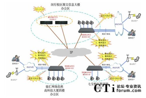 本次項目中上海交通大學網(wǎng)絡信息中心擬建設一套即可提供徐匯、閔行、七寶三個校區(qū)辦公區(qū)域的語音通訊,還可為信息中心日常工作使用的綜合通訊系統(tǒng)。