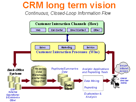 傳統(tǒng)企業(yè)管理的著眼點(diǎn)往往在后臺(tái),ERP系統(tǒng)幫助它們實(shí)現(xiàn)了這種內(nèi)部商業(yè)流程的自動(dòng)化,提高了生產(chǎn)效率。而對(duì)于前臺(tái),往往重視得不夠,面對(duì)諸如:哪種產(chǎn)品最受歡迎、原因是什么、有多少回頭客、哪些客戶是最賺錢的客戶、售后服務(wù)有哪些問(wèn)題等,大部分企業(yè)還只能依靠經(jīng)驗(yàn)來(lái)推測(cè)。而CRM是對(duì)傳統(tǒng)ERP概念向外的延伸,作為專門管理企業(yè)前臺(tái)的軟件,提供了一個(gè)收集、分析和利用各種客戶信息的系統(tǒng),幫助企業(yè)充分利用其客戶關(guān)系資源,也為企業(yè)在電子商務(wù)時(shí)代從容自如地面對(duì)客戶提供了科學(xué)手段和方法。使企業(yè)充分共享內(nèi)部的資源,通過(guò)一個(gè)統(tǒng)一的視角,借助多渠道的方式與其客戶進(jìn)行交流。
