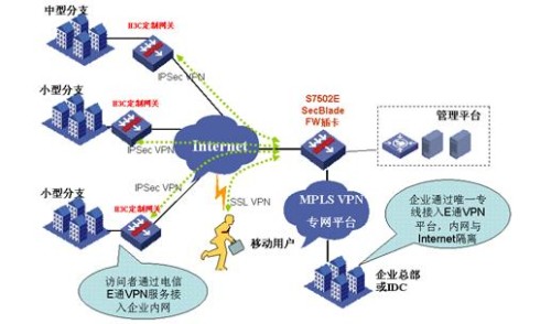 企業(yè)專網(wǎng)作為企業(yè)內(nèi)部信息分享的重要通道,已經(jīng)成為提升工作效率的關(guān)鍵。但由于企業(yè)專網(wǎng)前期投資巨大、建設(shè)速度遠(yuǎn)落后于企業(yè)發(fā)展速度,因此以租賃形式為主的VPN業(yè)務(wù)漸漸興起。上海電信作為國(guó)內(nèi)領(lǐng)先的運(yùn)營(yíng)商,與業(yè)界領(lǐng)先的IToIP解決方案提供商H3C的合作,推出的“E通VPN”品牌業(yè)務(wù),提供“網(wǎng)絡(luò)+安全+服務(wù)+Qos”綜合信息服務(wù),受到了企業(yè)用戶的廣泛歡迎。