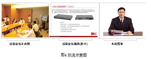 雙視頻流傳輸是指同時傳輸兩路動態(tài)視頻到各分會場:雙流是指分會場能夠?qū)⒈緯䦂龅膬陕芬曨l同時傳輸?shù)組CU上,MCU 能夠?qū)陕芬曨l同時傳輸?shù)礁鞣謺䦂。ME5000與MG6060配合可以將終端第二路視頻傳輸?shù)狡渌麜䦂,適用于在開會的同時,對文件、圖片講解,使會議更加生動,內(nèi)容更加豐富。