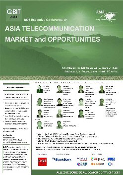 2006亞洲信息及通信技術(shù)展覽會,即亞洲CeBIT展將于今年9月17日至20日在上海新國際博覽中心召開。由中國國際貿(mào)促會電子信息行業(yè)分會與德國漢諾威展覽公司聯(lián)合主辦的這一展會,近300家國內(nèi)外廠商參展,將分為數(shù)字設(shè)備及系統(tǒng)、商務(wù)應(yīng)用、通信三大展區(qū),多方位展現(xiàn)ICT行業(yè)的最新趨勢,并成為業(yè)內(nèi)廠商的專業(yè)貿(mào)易平臺。本次CeBIT展會期間(9月18、19日兩天),將在浦東證大麗笙酒店召開“2006亞洲通信及信息市場管理層論壇”。包括中國國家信息產(chǎn)業(yè)部、中國電信、韓國SK電訊、BDA中國等多家政府機關(guān)、運營商、制造商將參加本次論壇,并做重要發(fā)言。