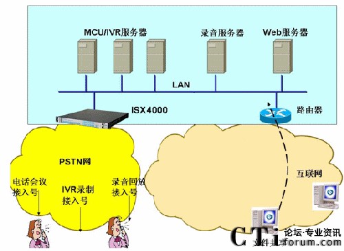 STOP SERVICE)平臺,是當(dāng)前和未來電信運營商(TCO)及虛擬服務(wù)提供商(SP/CP)增值業(yè)務(wù)規(guī)劃的最佳選擇,特別是中國重組后的3大運營商都具備全業(yè)務(wù)運營資格,正在規(guī)劃前所未有的全業(yè)務(wù)運營平臺(融合有線和無線、融合語音和數(shù)據(jù)、融合2G和3G、融和傳統(tǒng)PSTN和NGN網(wǎng)絡(luò)、融合電信網(wǎng)和互聯(lián)網(wǎng)),怎樣的設(shè)備才能問鼎和支撐這樣的全業(yè)務(wù)平臺?不妨仔細(xì)研究ISX4000的豪華單機和級聯(lián)配置:單機支持最大128E1(SS7、PRI)光電接口接入、4096路語音資源、4096路會議資源、多達(dá)6464路IP(G.711-6464路、G.729-2688路、G.723-2048路)、768路傳真資源、1280路FSK資源(用于E-POS)、1024路視頻資源。通過簡單易用的管理維護(hù)工具OAM可以對上述資源任意組合、動態(tài)配置、平滑升級。不僅如此,ISX4000本機同步配置的DSP采用高性能的回聲消除和音質(zhì)增強(EC