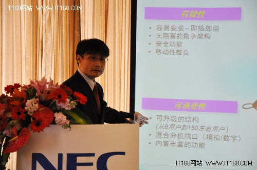 橋沢太一郎先生在發(fā)布會上表示,全新的SL1000注入了諸多先進技術(shù)和NEC十幾年在亞洲市場上的經(jīng)驗。它不是一個簡單的電話產(chǎn)品,而是一款卓越的通信服務器。NEC為它提供IP和遠距離監(jiān)控功能,配合NEC的UC(統(tǒng)一通信)應用程序能實現(xiàn)更加有效的工作方式。