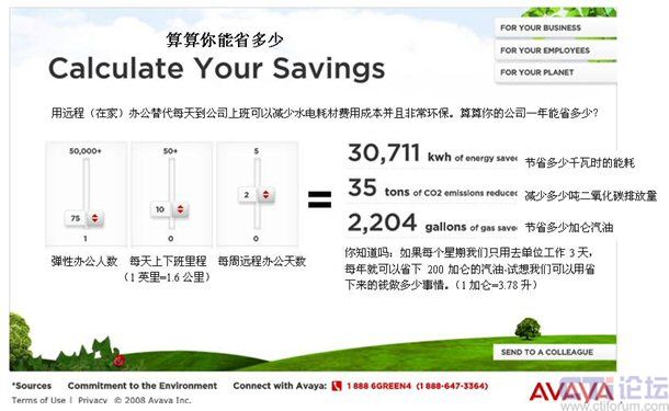 彈性辦公到底能省多少?Avaya在線節(jié)能計(jì)算器幫你算