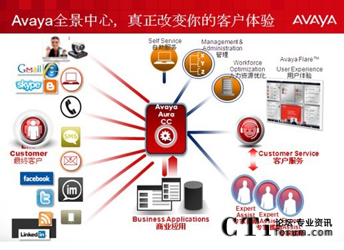 Avaya始終是企業(yè)通信行業(yè)的領(lǐng)導(dǎo)廠商,更是呼叫中心領(lǐng)域市場(chǎng)占有率第一的解決方案供應(yīng)商。Avaya認(rèn)為,呼叫中心并不是簡(jiǎn)單的電話通信,而是建置在通信平臺(tái)上的業(yè)務(wù)應(yīng)用和運(yùn)營(yíng)管理平臺(tái),這也是Avaya在呼叫中心領(lǐng)域取得成功的理論基礎(chǔ)。今天,業(yè)界在熱烈研討云通信的課題,Avaya當(dāng)然也有自己的云戰(zhàn)略。Avaya對(duì)云呼叫中心的定義是,基于SIP的開(kāi)放性技術(shù),將呼叫中心的三個(gè)核心因素(即企業(yè)通信、業(yè)務(wù)應(yīng)用、運(yùn)營(yíng)管理)統(tǒng)一放在云計(jì)算的架構(gòu)下設(shè)計(jì)而成的下一代多媒體聯(lián)絡(luò)中心。Avaya始終認(rèn)為,單純考慮某一方面問(wèn)題都不是完整的云呼叫中心,呼叫中心歸根結(jié)底是個(gè)業(yè)務(wù)問(wèn)題。