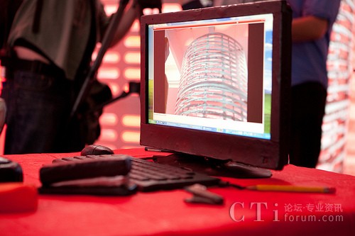 這個多層蛋糕在Avaya五月舉行的中小企業(yè)“大思維”市場活動中登場亮相,它在一張可食用的長會議桌上逼真呈現(xiàn)了工作中的Avaya電話、視頻會議解決方案和一套IP Office控制單元。 造型巧克力、谷類食品、軟糖及其它烘焙材料同各種必要的Avaya通信組件結(jié)合在一起制作出的這個蛋糕被Buddy命名為“科技蛋糕”。 在完成由巧克力仿制電話所撥打的語音通話、并成功支持Buddy和Avaya高級副總裁兼全球通信解決方案總裁Alan Baratz博士之間的實時視頻會議之后,這個蛋糕作為甜點供全體活動參加者享用。