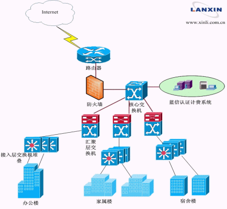 在此形勢下,解放軍后勤工程學院積極探索,尋求現(xiàn)代校園網(wǎng)建設的新出路。經(jīng)過對各種方案的收集整理,解放軍后勤工程學院與重慶電信達成共識,一起共謀現(xiàn)代校園網(wǎng)建設新模式:重慶電信負責提供網(wǎng)絡帶寬及軟硬件資源,依賴其深厚敦實的技術(shù)后盾及多年豐富的建網(wǎng)經(jīng)驗,攜手信利公司的藍信認證計費系統(tǒng)為校方提供一套從硬件到軟件的完整解決方案,讓廣大師生能快捷方便地享受更加豐富的網(wǎng)絡服務;而校方依據(jù)當前網(wǎng)絡狀況,可以對使用用戶進行行之有效的管理和維護,徹底解決了校方之憂,開辟了當前形勢下的新天地。