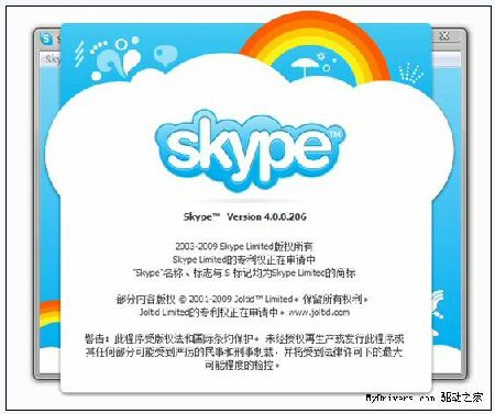 Skype 4.0.0.206 Windows正式版(多國語言版)本地下載:http://www.myfiles.com.cn