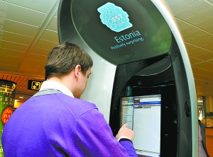 3月22日,在愛沙尼亞首都塔林國際機(jī)場,一名男子使用skype音視頻電話。當(dāng)日,世界上第一個通過互聯(lián)網(wǎng)免費(fèi)進(jìn)行全球音視頻通話的skype電話亭在塔林國際機(jī)場正式投入使用。