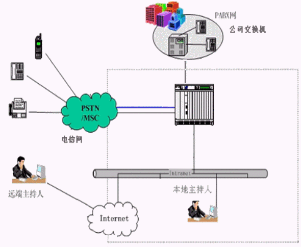 - 支持多種會議終端和其他通訊設備,如:普通電話、移動電話、會議電話終端、PC會議終端。