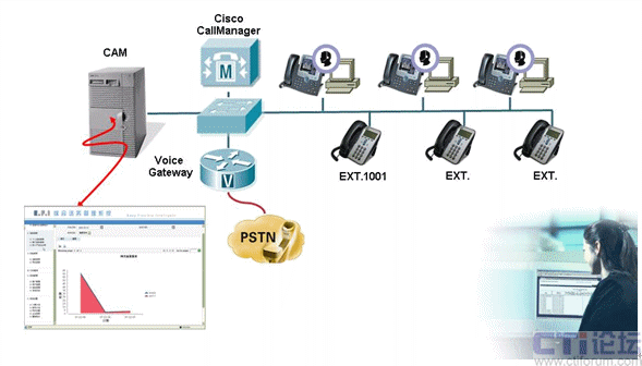 通過與Cisco 統(tǒng)一通信管理器(Cisco Communcation Manager)的無縫整合,CAM可以為企業(yè)提供相關語音通信的話務統(tǒng)計、呼叫計費、流量分析等功能。通過簡單的報表生成使用戶可以方便、及時的對整個企業(yè)的通訊情況進行分析,從而有效的對通訊資源進行管理、控制并防止通信資源浪費。