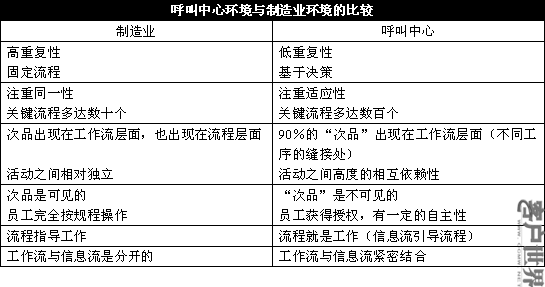 瀏覽一下這個表格之后,你還認(rèn)為原本用于制造業(yè)的一種流程改進(jìn)方法,也能夠適用于屬于變動環(huán)境的呼叫中心嗎?