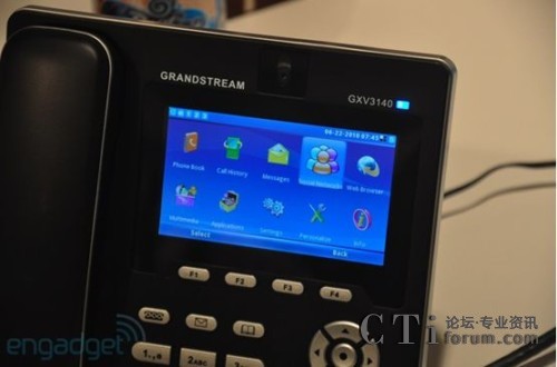 潮流網(wǎng)絡(Grandstream)的多媒體視頻電話GXV3140和GXV3175很早就通過Skype認證并取得“plugged into Skype”的標簽許可,在話機中內(nèi)置了SkypeKit,可以進行文字聊天、影音通話等Skype應用操作。以下是Skype發(fā)布SDK時演示的在Grandstream GXV3140上的影音通話的照片: