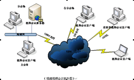 保險公司在公司總部搭建視頻會議服務器,總公司與各分公司通過公司內(nèi)部網(wǎng)絡連接,其視頻會議系統(tǒng)拓撲圖如下: