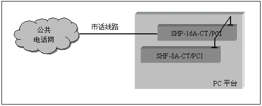 采用SHF系列傳真資源卡,可使您的語音系統(tǒng)增添傳真存貯、傳發(fā)、自動(dòng)傳真回復(fù)等附加功能。只要采用卡間總線(ISA卡采用ST-BUS,PCI卡采用CT-BUS H.100),將語音卡與傳真資源卡相連,即可使每一個(gè)語音通道具有傳真功能。典型系統(tǒng)結(jié)構(gòu)如下: