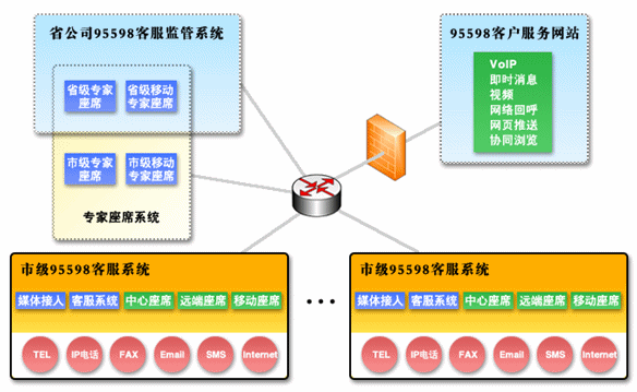 在電力客戶服務(wù)中心系統(tǒng)解決方案中,我們采用了更加先進(jìn)的第四代呼叫中心系統(tǒng)作為客服系統(tǒng)的平臺?梢詫(shí)現(xiàn)的客戶聯(lián)絡(luò)方式已經(jīng)不僅僅局限于傳統(tǒng)的語音和傳真的呼叫形式,網(wǎng)絡(luò)電話、網(wǎng)絡(luò)傳真、Email、短消息、即時消息、互聯(lián)網(wǎng)應(yīng)用等都是與客戶聯(lián)絡(luò)的重要方式,涉及到的媒體載體也不僅是PSTN,還有基于VoIP技術(shù)的現(xiàn)代網(wǎng)絡(luò)、無線網(wǎng)絡(luò)等;也就是說第四代呼叫中心系統(tǒng)是一個融合網(wǎng)絡(luò)、語音、數(shù)據(jù)庫、視頻和安全技術(shù)的綜合信息服務(wù)平臺。整個95598電力客戶服務(wù)系統(tǒng)是由呼叫中心子系統(tǒng)和業(yè)務(wù)處理子系統(tǒng)共同構(gòu)成。