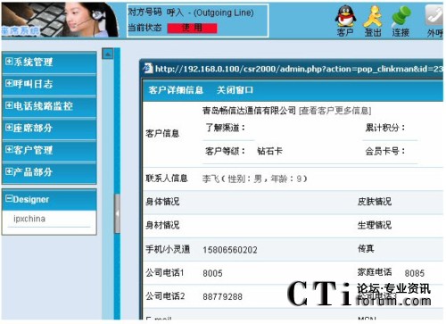 作為呼叫中心的核心功能,來(lái)電彈屏功能在客戶和服務(wù)代表之間建立了溝通的橋梁。當(dāng)電話接入客服代表電話振鈴的同時(shí),電腦屏幕會(huì)彈出客戶的相關(guān)資料。如果是新客戶,則彈出空白頁(yè)面,客服代表可以說歡迎的同時(shí)錄入客戶資料,以備客戶下次來(lái)電時(shí)查詢。當(dāng)客戶在網(wǎng)上選購(gòu)產(chǎn)品時(shí),有問題可以隨時(shí)打電話溝通,來(lái)時(shí)的同時(shí),座席電腦上彈出客戶已經(jīng)填寫的資料,座席對(duì)客戶的資料一目了然,提高了工作效率。來(lái)電彈屏的頁(yè)面可以根據(jù)用記要求定制。