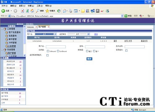 系統(tǒng)配置管理為管理員提供了一個(gè)管理的平臺(tái),來(lái)對(duì)系統(tǒng)的用戶、數(shù)據(jù)、參數(shù)、類(lèi)型等進(jìn)行靈活的配置,從而適應(yīng)快速變化的業(yè)務(wù)需求。系統(tǒng)用戶管理包括座席人員賬號(hào)的設(shè)置、座席組的指定、座席技能的管理以及權(quán)限的分配等。