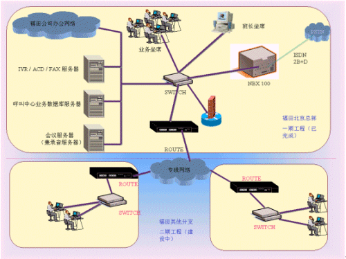 2. 隨著福田企業(yè)的發(fā)展,福田面臨的用戶群也日趨龐大。為了更好地為客戶服務,同時也為了提高企業(yè)的整體形象,福田公司準備建立客戶服務呼叫中心。首先在北京總部設立集中式的人工坐席,待各地分公司和總部之間的數(shù)據(jù)網(wǎng)絡建成后還要在各地分公司建立分布式的人工坐席。